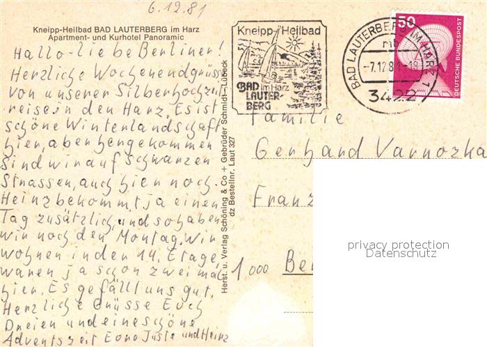 72823343 alte Postkarte Bad Lauterberg Apartment und Kurhotel Panoramic postalisch gelaufen Erhaltung siehe scans [FriedD77] KatCode: 11110003156002