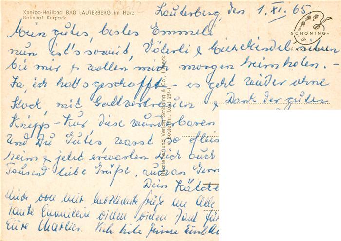 73937516 alte Postkarte Bad Lauterberg Bahnhof Kurpark postalisch gelaufen Erhaltung siehe scans [WerneD78] KatCode: 11110003156002