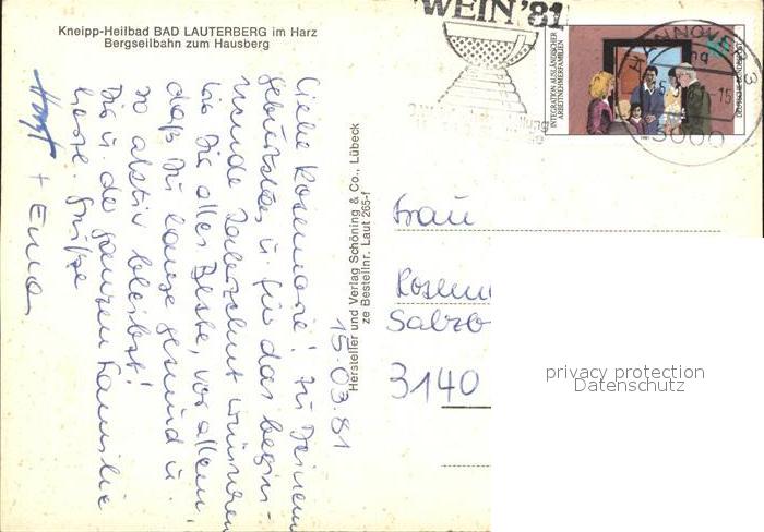 72009760 alte Postkarte Bad Lauterberg Bergseilbahn zum Hausberg postalisch gelaufen Erhaltung siehe scans KatCode: 11110003156002