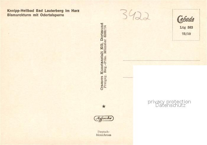 72959838 Bad Lauterberg Bismarckturm mit Odertalsperre Fliegeraufnahme postalisch nicht gelaufen Erhaltung siehe scans [WerneD78] KatCode: 11110003156002