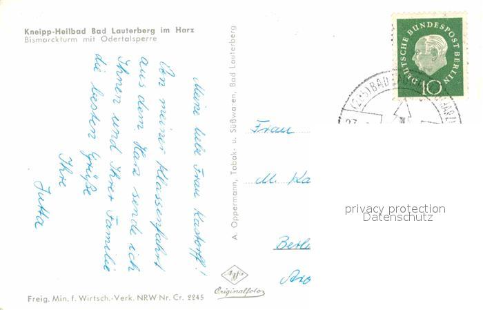 72886378 alte Postkarte Bad Lauterberg Bismarckturm Odertalsperre Fliegeraufnahme postalisch gelaufen Erhaltung siehe scans [FriedD77] KatCode: 11110003156002