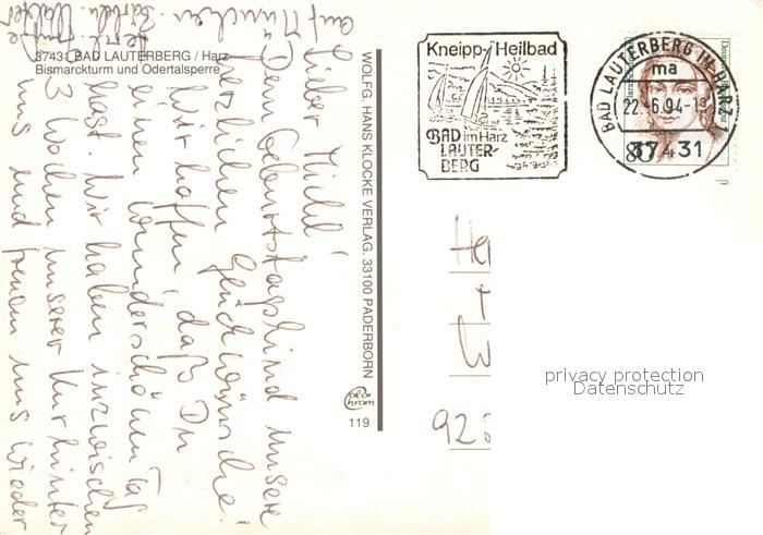 73718222 alte Postkarte Bad Lauterberg Bismarckturm und Odertalsperre Fliegeraufnahme postalisch gelaufen Erhaltung siehe scans [WerneD78] KatCode: 11110003156002