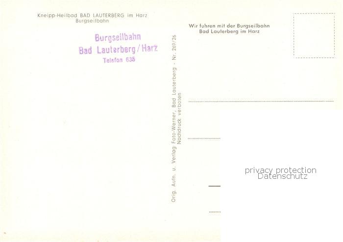 73765146 Bad Lauterberg Burgseilbahn Panorama postalisch nicht gelaufen Erhaltung siehe scans [FriedD77] KatCode: 11110003156002