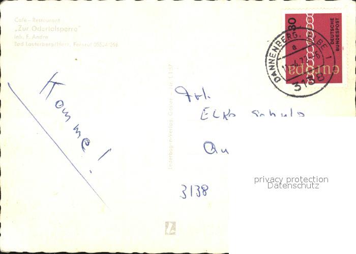 alte Postkarte Bad Lauterberg Cafe Restaurant Zur Odertalsperre Theke Gastraum postalisch gelaufen Erhaltung siehe scans