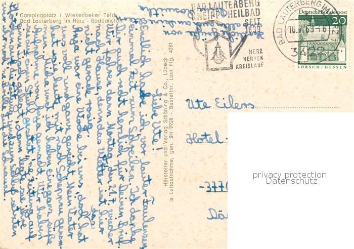 73796537 alte Postkarte Bad Lauterberg Campingplatz Wiesenbeker Teich Fliegeraufnahme postalisch gelaufen Erhaltung siehe scans [WerneD78] KatCode: 11110003156002