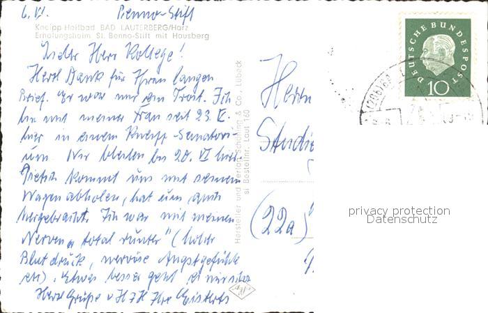 72073823 alte Postkarte Bad Lauterberg Erholungsheim St Benno Stift mit Hausberg Kneipp Heilbad postalisch gelaufen Erhaltung siehe scans KatCode: 11110003156002