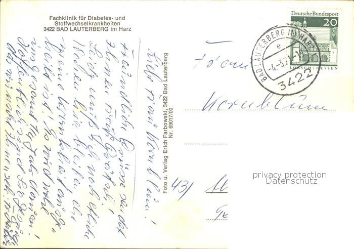 72016663 alte Postkarte Bad Lauterberg Fachklinik fuer Diabetes- und Stoffwechselkrankheiten postalisch gelaufen Erhaltung siehe scans KatCode: 11110003156002