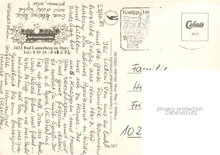 73656625 alte Postkarte Bad Lauterberg Fliegeraufnahme postalisch gelaufen Erhaltung siehe scans [WerneD78] KatCode: 11110003156002