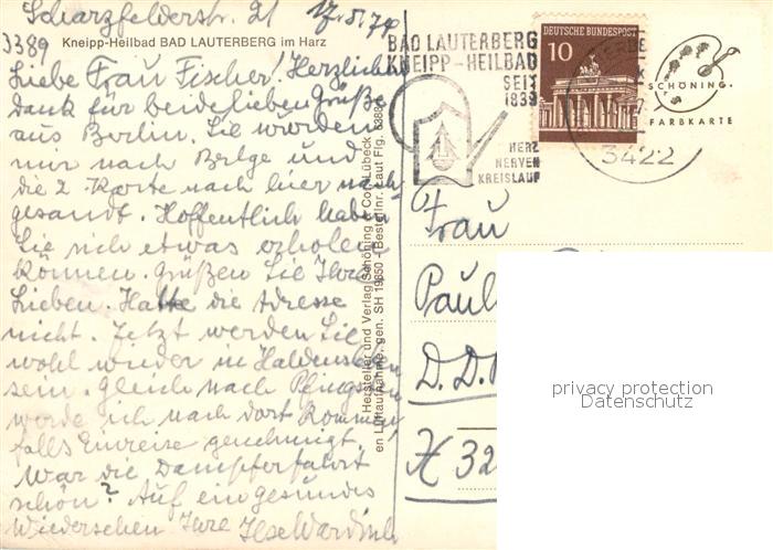 72974046 alte Postkarte Bad Lauterberg Fliegeraufnahme postalisch gelaufen Erhaltung siehe scans [PaolaD17] KatCode: 11110003156002