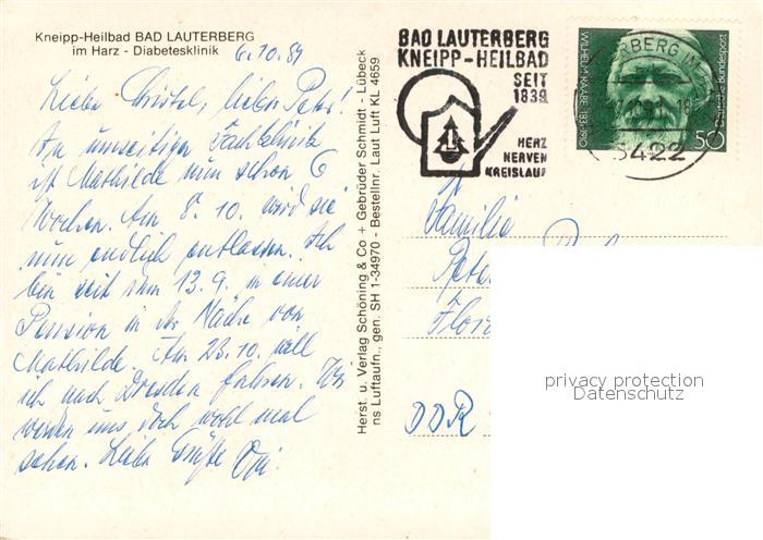 73662179 alte Postkarte Bad Lauterberg Fliegeraufnahme Diabetesklinik postalisch gelaufen Erhaltung siehe scans [LiesaD40] KatCode: 11110003156002