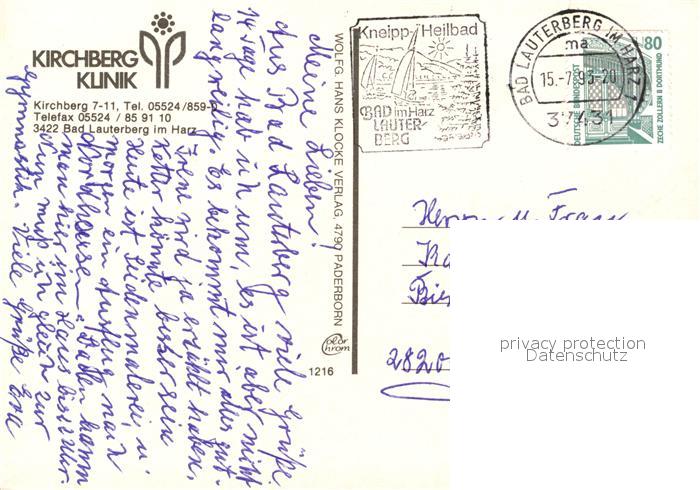 73172862 alte Postkarte Bad Lauterberg Fliegeraufnahme Klinik Kirchberg Kurkonzert Hauptstrasse Glockenspielhaus Hausberg postalisch gelaufen Erhaltung siehe scans [LiesaD40] KatCode: 11110003156002