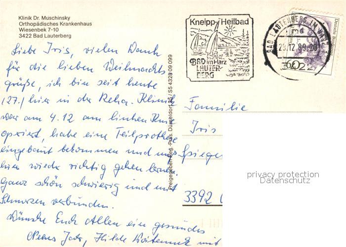 73165386 alte Postkarte Bad Lauterberg Fliegeraufnahme Klinik Muschinsky Orthopaedisches Krankenhaus postalisch gelaufen Erhaltung siehe scans [KathaD81] KatCode: 11110003156002