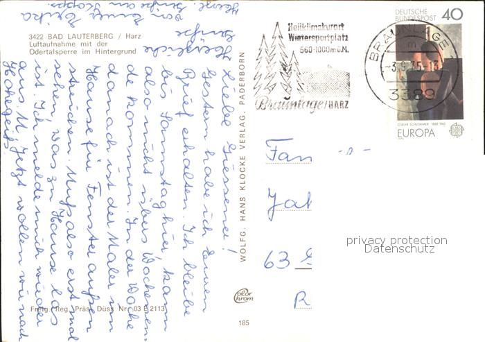 71984161 alte Postkarte Bad Lauterberg Fliegeraufnahme Odertalsperre postalisch gelaufen Erhaltung siehe scans KatCode: 11110003156002