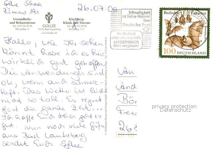 73686062 alte Postkarte Bad Lauterberg Gesundheits und Rehazentrum Gollee Garten Liegewiese postalisch gelaufen Erhaltung siehe scans [WerneD78] KatCode: 11110003156002