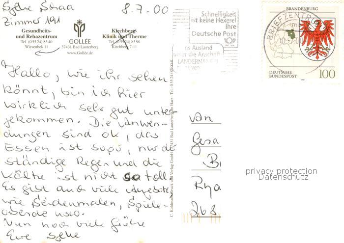 73686061 alte Postkarte Bad Lauterberg Gesundheits und Rehazentrum Gollee Gastraum Hallenbad Liegewiese postalisch gelaufen Erhaltung siehe scans [WerneD78] KatCode: 11110003156002