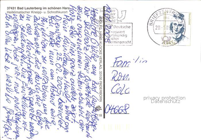 72583393 alte Postkarte Bad Lauterberg Glockenspiel Hauptstrase Kurhaus Wissmann-Denkmal postalisch gelaufen Erhaltung siehe scans [LiesaD40] KatCode: 11110003156002