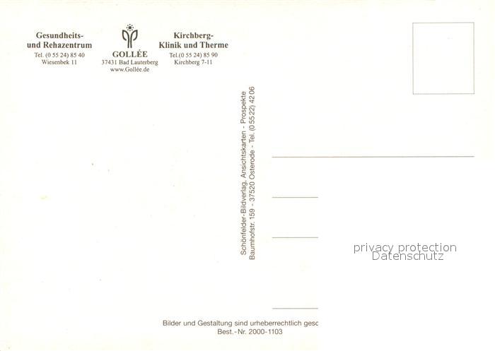 72962122 Bad Lauterberg Gollee Kirchberg-Therme Bad Lauterberg postalisch nicht gelaufen Erhaltung siehe scans [PaolaD17] KatCode: 11110003156002