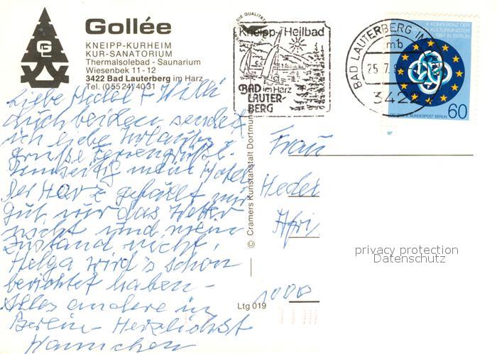 73167987 alte Postkarte Bad Lauterberg Gollèe Kneipp-Kurheim Sanatorium postalisch gelaufen Erhaltung siehe scans [LiesaD40] KatCode: 11110003156002