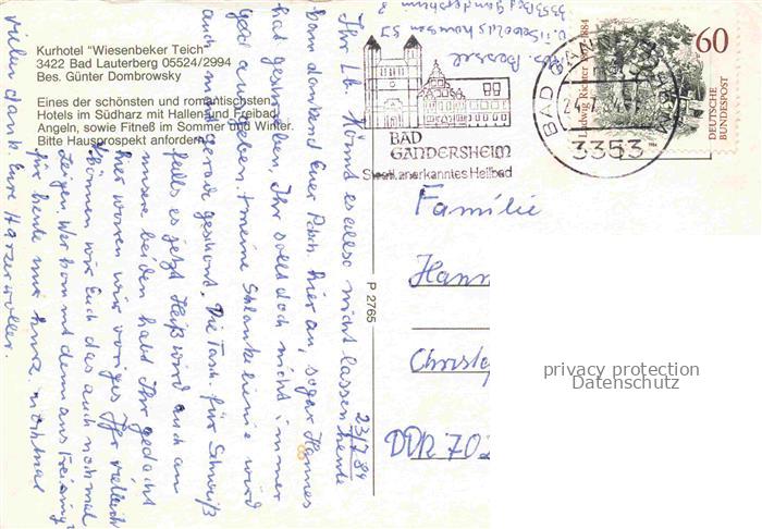 74100325 alte Postkarte Bad Lauterberg Harz Kurhotel Wiesenbeker Teich Ruderboot postalisch gelaufen Erhaltung siehe scans [FriedD77] KatCode: 11110003156002