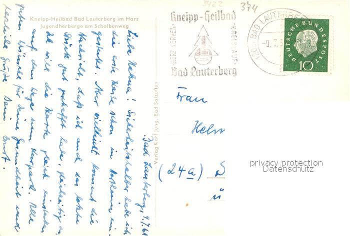 73335523 alte Postkarte Bad Lauterberg Jugendherberge am Scholbenweg Kneipp Heilbad postalisch gelaufen Erhaltung siehe scans [FriedD77] KatCode: 11110003156002