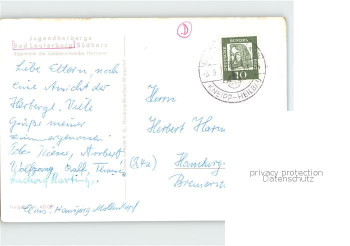 72078895 alte Postkarte Bad Lauterberg Jugendherberge Fliegeraufnahme postalisch gelaufen Erhaltung siehe scans KatCode: 11110003156002