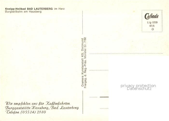 73129516 Bad Lauterberg Kneipp-Heilbad Burgseilbahn am Hausberg Fliegeraufnahme postalisch nicht gelaufen Erhaltung siehe scans [PaolaD17] KatCode: 11110003156002