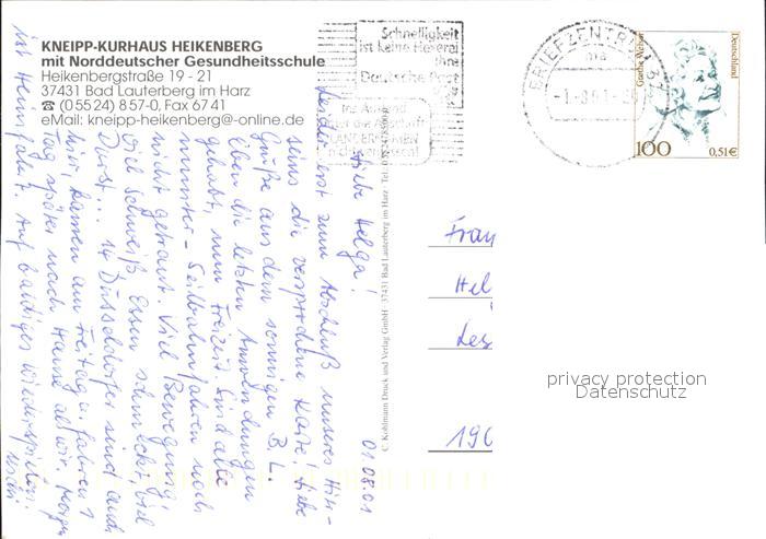 72248063 alte Postkarte Bad Lauterberg Kneipp Kurhaus Heikenberg postalisch gelaufen Erhaltung siehe scans KatCode: 11110003156002