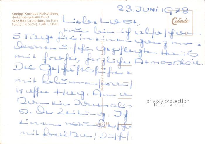 72200750 Bad Lauterberg Kneipp- Kurhaus Heikenberg postalisch nicht gelaufen Erhaltung siehe scans KatCode: 11110003156002