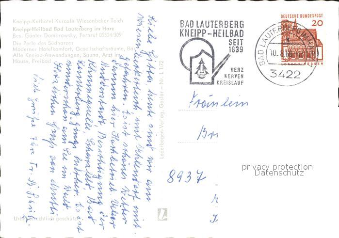 71926745 alte Postkarte Bad Lauterberg Kneipp Kurhotel Kurcafe Wiesenbeker Teich postalisch gelaufen Erhaltung siehe scans KatCode: 11110003156002