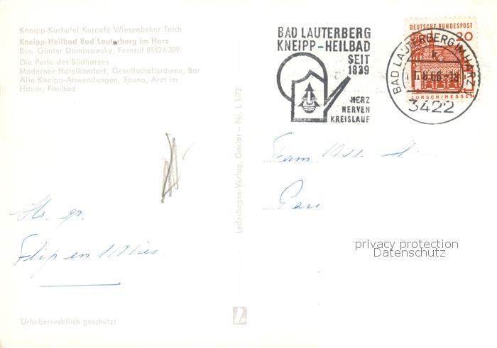 73835304 alte Postkarte Bad Lauterberg Kneipp Kurhotel KurCafe Wiesenbeker Teich postalisch gelaufen Erhaltung siehe scans [FriedD77] KatCode: 11110003156002