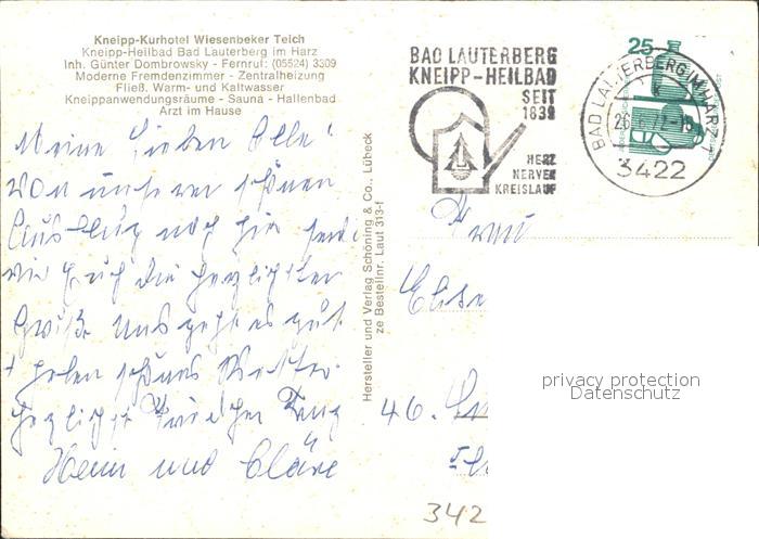 72369992 alte Postkarte Bad Lauterberg Kneipp Kurhotel Weisenbecker Teich postalisch gelaufen Erhaltung siehe scans KatCode: 11110003156002
