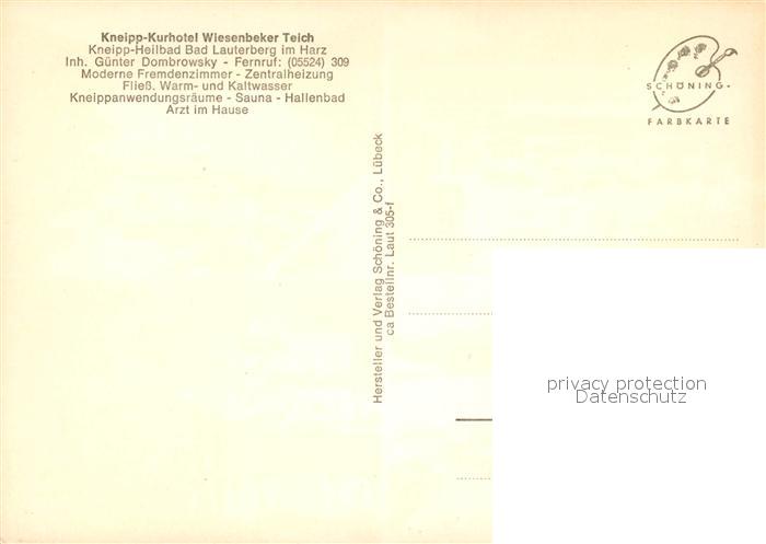 73129521 Bad Lauterberg Kneipp-Kurhotel Wiesenbeker Teich postalisch nicht gelaufen Erhaltung siehe scans [PaolaD17] KatCode: 11110003156002