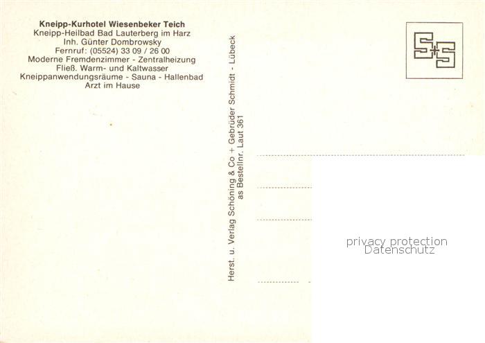 72989626 Bad Lauterberg Kneipp Kurhotel Wiesenbeker Teich postalisch nicht gelaufen Erhaltung siehe scans [WerneD78] KatCode: 11110003156002