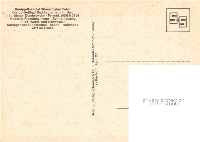 72832513 Bad Lauterberg Kneipp-Kurhotel Wiesenbeker Teich postalisch nicht gelaufen Erhaltung siehe scans [NatalD47] KatCode: 11110003156002