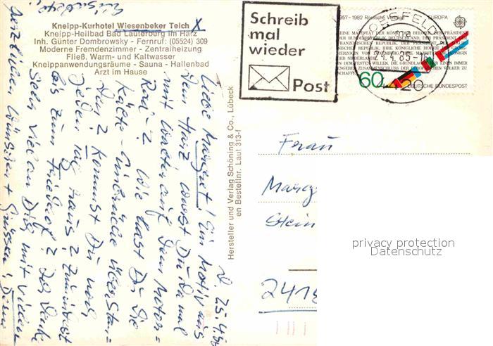 72802791 alte Postkarte Bad Lauterberg Kneipp Kurhotel Wiesenbeker Teich postalisch gelaufen Erhaltung siehe scans [FriedD77] KatCode: 11110003156002