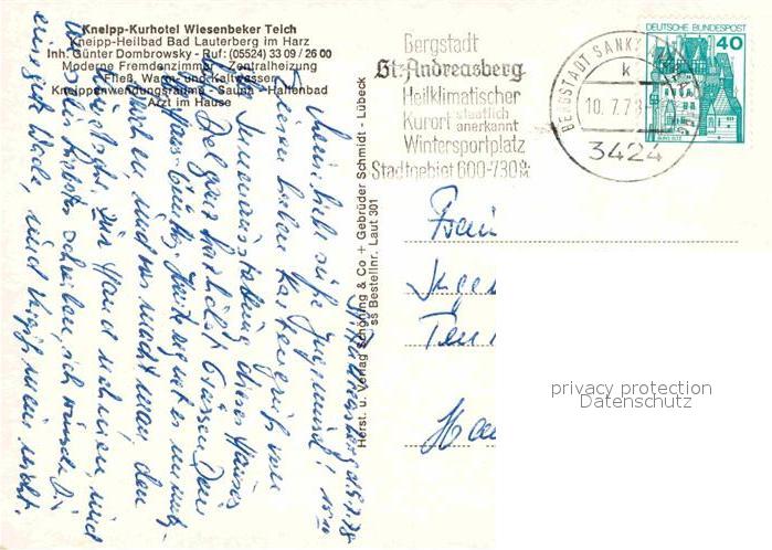 72701195 alte Postkarte Bad Lauterberg Kneipp Kurhotel Wiesenbeker Teich postalisch gelaufen Erhaltung siehe scans [KathaD79] KatCode: 11110003156002