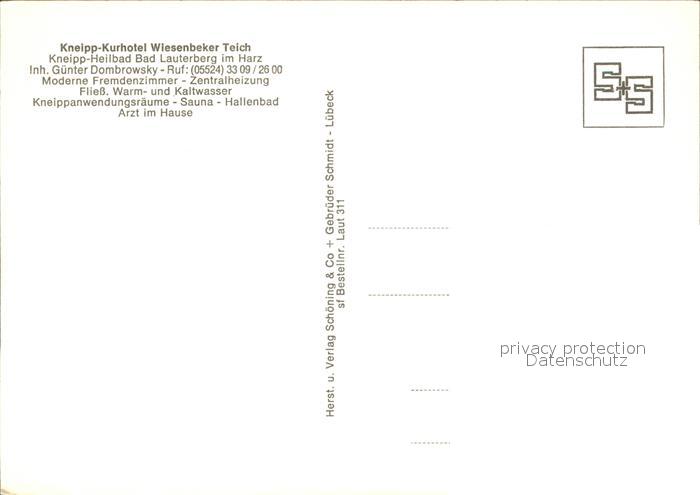 72478749 Bad Lauterberg Kneipp Kurhotel Wiesenbeker Teich postalisch nicht gelaufen Erhaltung siehe scans KatCode: 11110003156002