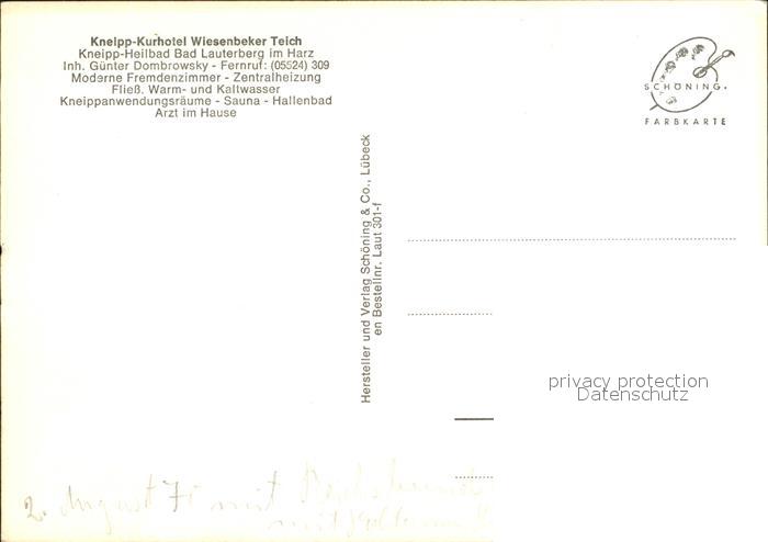 72426947 Bad Lauterberg Kneipp Kurhotel Wiesenbeker Teich postalisch nicht gelaufen Erhaltung siehe scans KatCode: 11110003156002