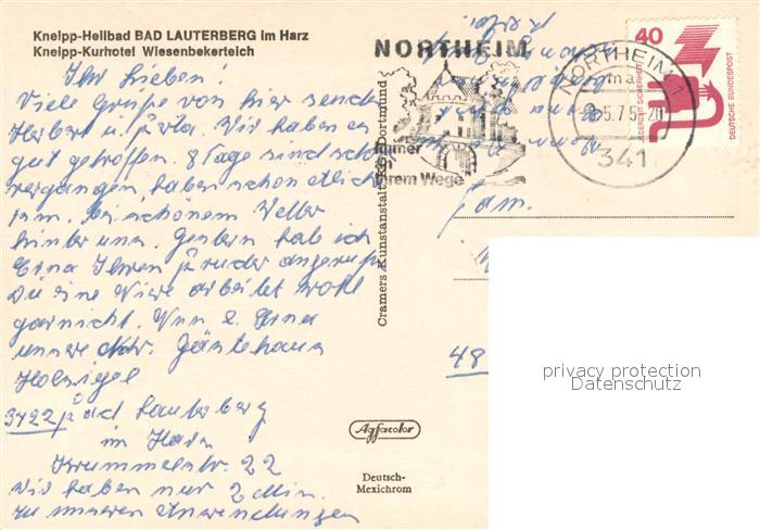 73663621 alte Postkarte Bad Lauterberg Kneipp Kurhotel Wiesenbekerteich postalisch gelaufen Erhaltung siehe scans [FriedD77] KatCode: 11110003156002