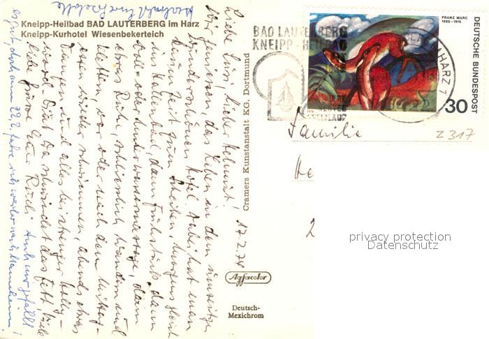 73129438 alte Postkarte Bad Lauterberg Kneipp-Kurhotel Wiesenbekerteich postalisch gelaufen Erhaltung siehe scans [PaolaD17] KatCode: 11110003156002