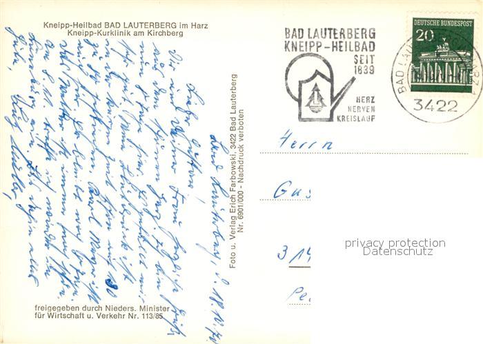 72961274 alte Postkarte Bad Lauterberg Kneipp Kurklinik am Kirchberg Fliegeraufnahme postalisch gelaufen Erhaltung siehe scans [WerneD78] KatCode: 11110003156002