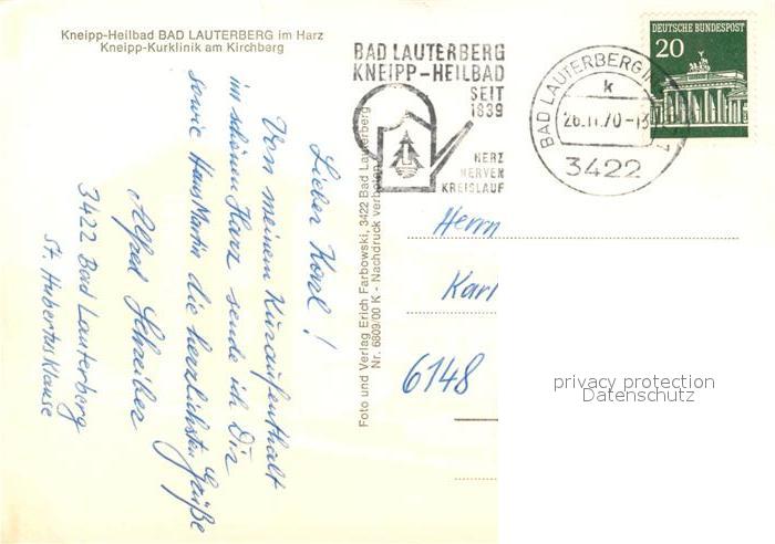73099405 alte Postkarte Bad Lauterberg Kneipp Kurklinik am Kirchberg postalisch gelaufen Erhaltung siehe scans [WerneD78] KatCode: 11110003156002
