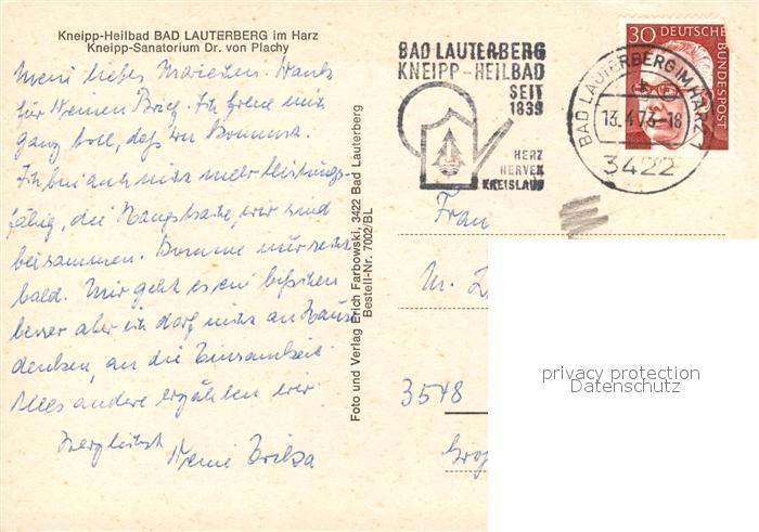73576335 alte Postkarte Bad Lauterberg Kneipp Sanatorium Dr. von Plachy postalisch gelaufen Erhaltung siehe scans [FriedD77] KatCode: 11110003156002