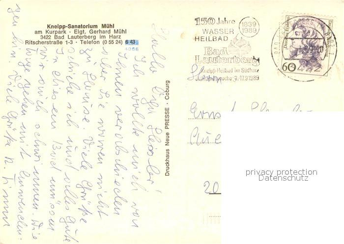 73743478 alte Postkarte Bad Lauterberg Kneipp-Sanatorium Muehl Hallenbad postalisch gelaufen Erhaltung siehe scans [LiesaD40] KatCode: 11110003156002