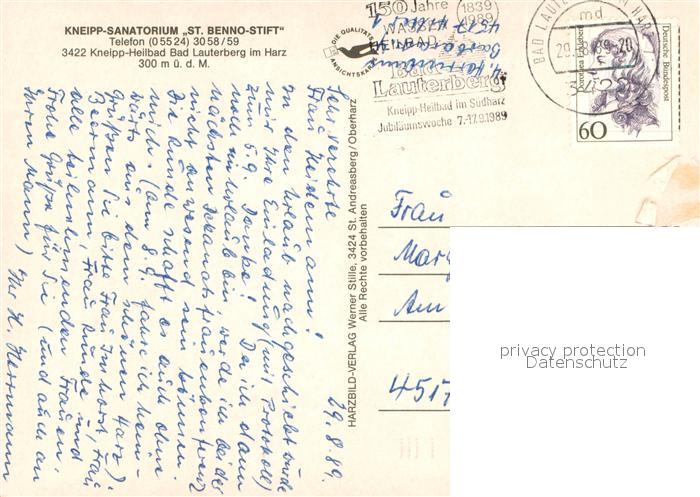 73687200 alte Postkarte Bad Lauterberg Kneipp Sanatorium St. Benno Stift postalisch gelaufen Erhaltung siehe scans [FriedD77] KatCode: 11110003156002