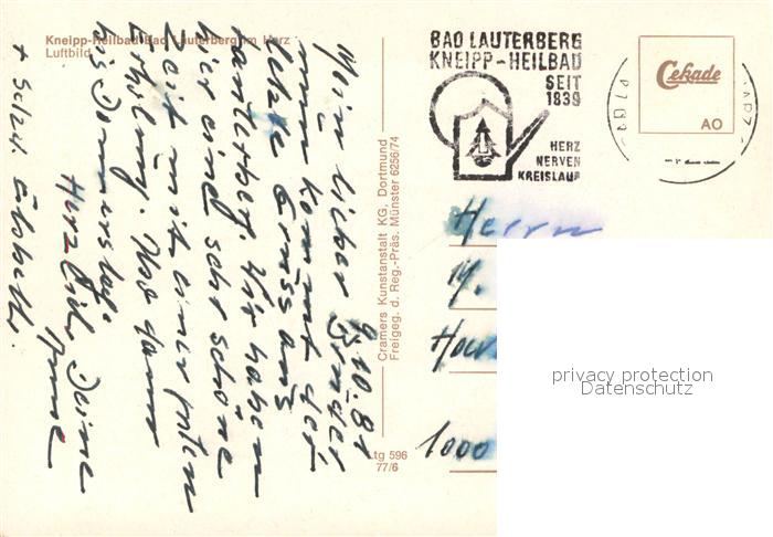 73657162 alte Postkarte Bad Lauterberg Kneipp- und Heilbad Fliegeraufnahme postalisch gelaufen Erhaltung siehe scans [FriedD77] KatCode: 11110003156002
