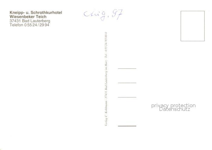 73828612 Bad Lauterberg Kneipp und Schrothkurhotel Wiesenbeker Teich postalisch nicht gelaufen Erhaltung siehe scans [WerneD78] KatCode: 11110003156002