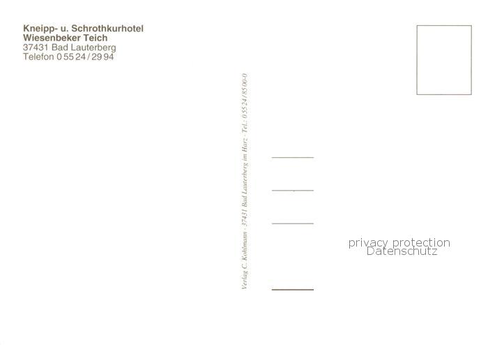 73858848 Bad Lauterberg Kneipp- und Schrothkurhotel Wiesenbeker Teich postalisch nicht gelaufen Erhaltung siehe scans [FriedD77] KatCode: 11110003156002