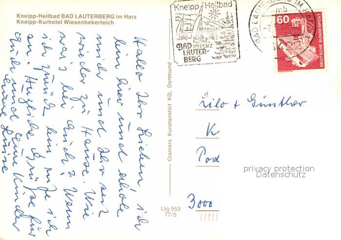 72825356 alte Postkarte Bad Lauterberg KneippKurhotel Wiesenbekerteich postalisch gelaufen Erhaltung siehe scans [AndreD76] KatCode: 11110003156002