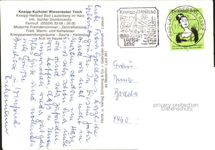 72231654 alte Postkarte Bad Lauterberg Kurhotel Wiesenbeker Teich postalisch gelaufen Erhaltung siehe scans KatCode: 11110003156002